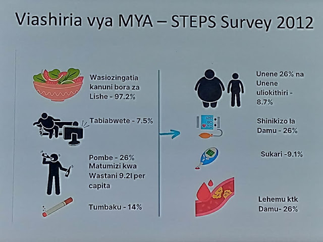Tafiti za wataalamu wa masuala ya afya na lishe bora zinabainisha kuwa asilimia 97.2 za viashiria vya magonjwa hayo yanatokana na kutozingatia kanuni bora za lishe,huku Mkoa wa Dodoma ukitajwa kuongoza kwa 42.27%,ikifatiwa na mkoa wa Geita 39.94 na Arusha 38.6%.
