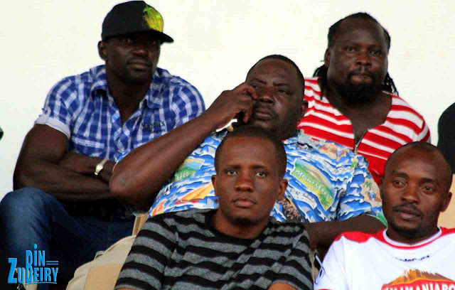[TD="class: tr-caption"]Mshambuliaji Makan Dembele (kushoto) akiwa na wakala wake Gibby Kalule (juu kulia) Uwanja wa Amaan, Zanzibar leo Simba SC ikimenyana na Mafunzo [/TD]