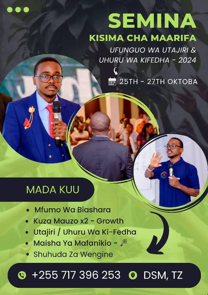 MUHIMU: Rafiki, nikushukuru kwa kuendelea pamoja kupitia mafunzo haya ninayotoa. Karibu kwenye huduma zaidi ninazotoa, kuanzia 1. VITABU, 2. NGUVU YA BUKU, 3. KISIMA CHA MAARIFA, 4. CHUO CHA MAUZO na 5. BILIONEA MAFUNZONI. Kupata maelezo ya huduma hizi, tumia mawasiliano yaliyopo hapo juu. Karibu sana.