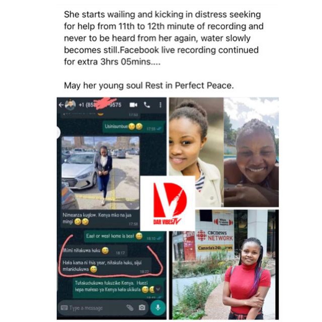 Hellen Wendy raia wa Kenya na nesi kwa taaluma aliyekua akiishi nchini Canada amefariki dunia jana kwenye swimming pool akiogolea uku akiwa live kupitia ukurasa wake wa Facebook.