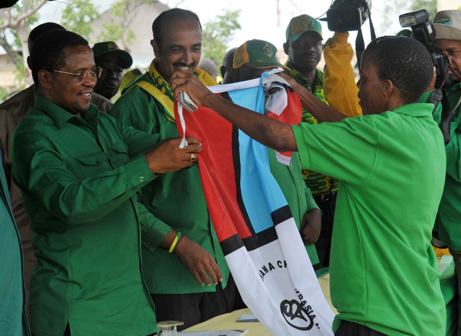 Jamani hii picha nimeichukua kwa michuzi na inamuunyesha huyu "kingozi wa chadema" akirudisha bendera ya chadema kwa kikwete. Ukiangalia mkono wake wa kushoto ameshikialia bulunguti la hela. Mimi nilihoji kule kwa michuzi kwamba huyu mbona na hela mkononi au kanunuliwa, maana wewe uko kwenye kazi rasmi ya kuukana uanachama wa chadema sasa hela mkononi za nini. Kama kawaida yeke michuzi akachakachua (kaminya) comment yangu. Nyie mnaonaje hamna ukweli hapo?