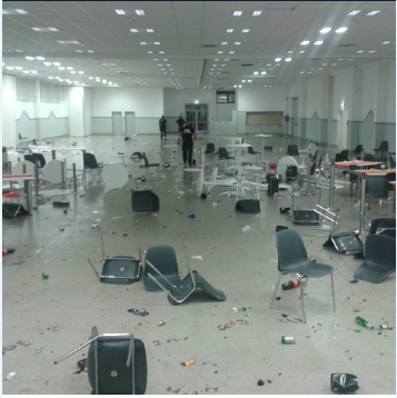 Sehemu ya ukumbi ulioharibiwa vibaya na washabiki mjini stuttgart,ujerumani