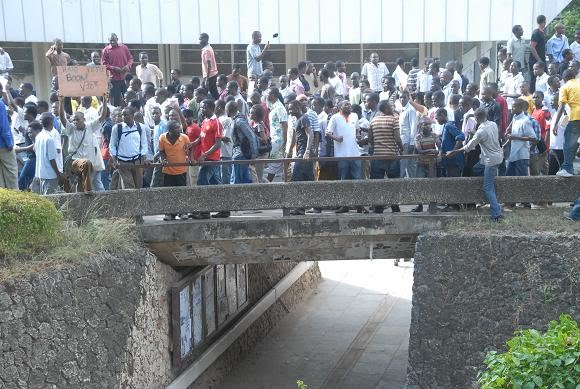 Maandamano bado yalikuwa yakiendelea kutokea chuoni hapo.