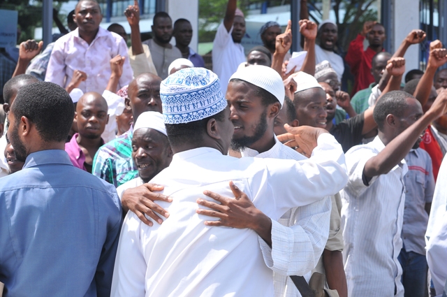 Wakiwapokea na kuwapongeza wenzao wanao tuhumiwa pamoja na Ponda