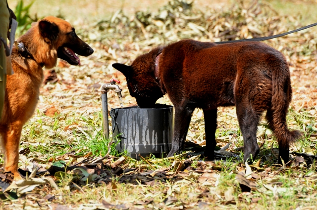 Mbwa maalum wa Polisi nao walikuwa kazini hapa wakikata kiu kutokana na jua kali.