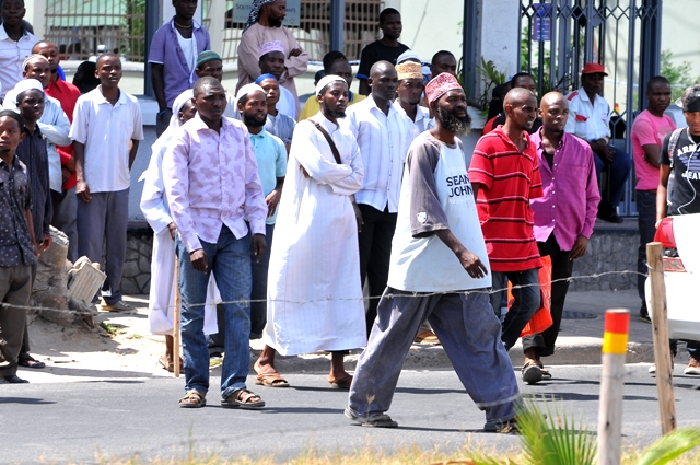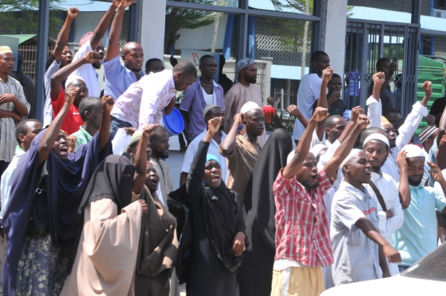 Wafuasi wa Sheikh Ponda Issa Pondawakilifuatilia gari lililombeba kiongozi wao wakati akitoka Mahakama ya Kisutu.