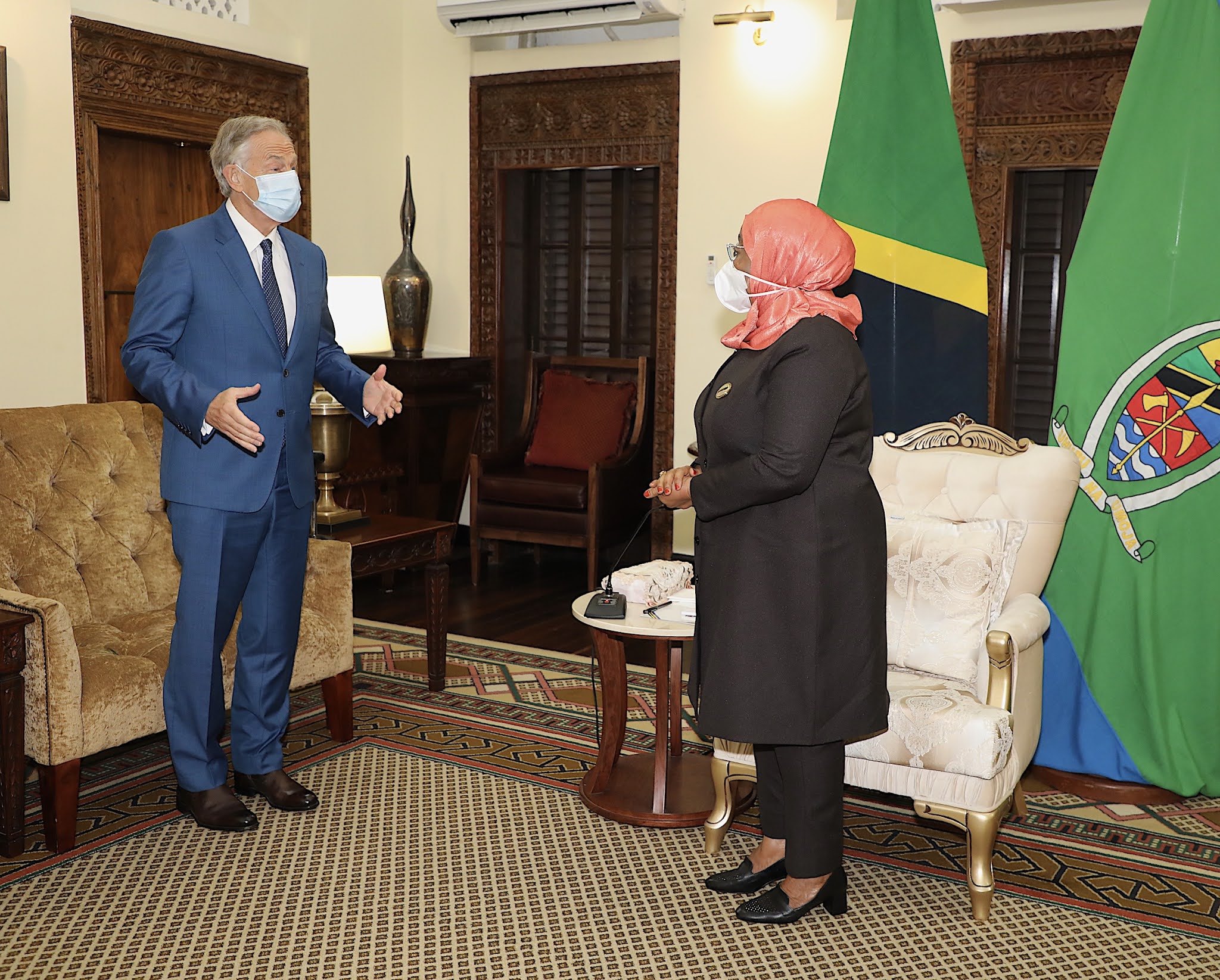 Waziri Mkuu Mstaafu wa Uingereza Mhe. Tony Blair wakati Mhe. Blair , akizungumza na Rais wa Jamhuri ya Muungano wa Tanzania Mhe. Samia Suluhu Hassan alipofika Ikulu Jijini Dar es salaam leo Julai 22,2021.