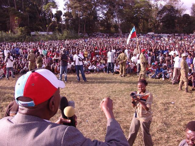 Sehemu ya maelfu ya wakazi wa mji wa Arusha, wakimpungia mikono mgombea urais wa Tanzania kupitia Chama cha Demokrasia na Maendeleo (CHADEMA), Dk. Willibrod Slaa wakati wa mkutano wake wa kampeni uliofanyika jana jijini humo.Picha kwa hisani ya Joseph Senga.