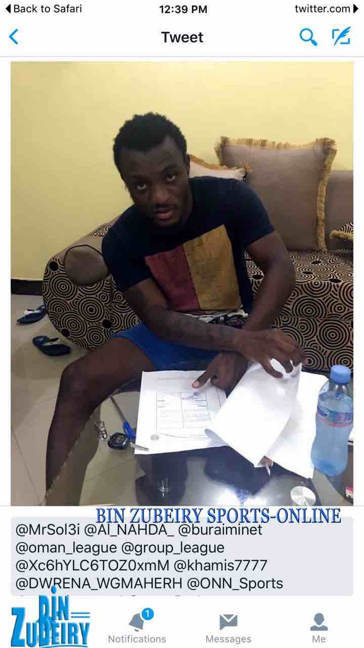 Kiongozi mmoja wa Al Nahda inayoshiriki Ligi Kuu ya Oman, ameposti kwenye akaunti yake ya Twitter picha za Kipre Tchetche akisaini Mikataba na kuandikia; “Muivory Coast Kipre Tchetche rasmi mchezaji wa kwanza wa kigeni Al Nahda ,”.