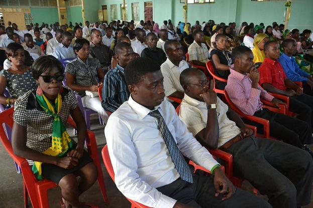 Baadhi ya wahitimu wa Chuo cha Sanaa, Lugha na Sayansi ya Jamii, Chuo Kikuu cha Dodoma (UDOM) wakimsikiliza Nape alipounzumza nao, katika sherehe yao ya kuagwa, iliyofanyika jana kwewnye ukumbi wa Kilimani mjini Dodoma.