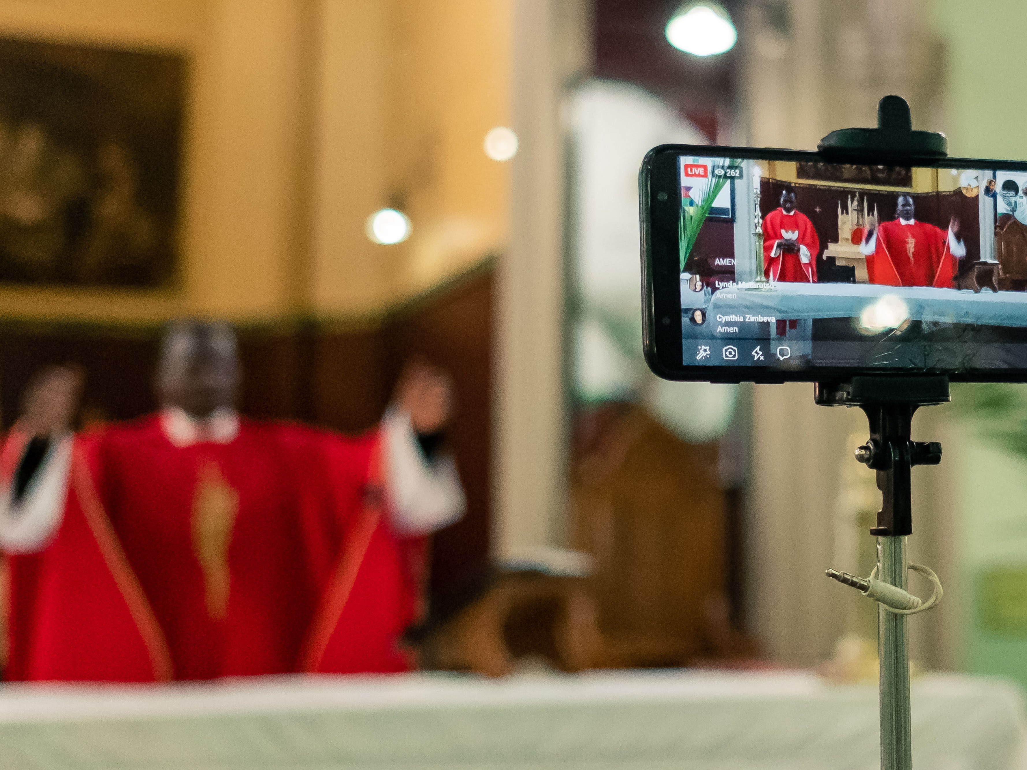 In Harare, Zimbabwe, Father Kennedy Mugute also used his phone to stream Palm Sunday Mass on Facebook Live.