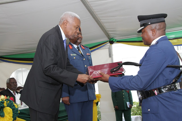 Makamu wa Rais wa Jamhuri ya Muungano wa Tanzania, Dkt. Mohammed Gharib Bilal, akimkabidhi Cheti cha kuhitimu Kozi maalum ya Kwanza ya Mafunzo, katika Chuo cha Taifa cha Ulinzi (NDC) ACP Faustine Martin Kasike, wakati wa sherehe za kufunga Kozi hiyo zilizofanyika katika Chuo hicho, Kunduchi jijini Dar es Salaam, leo.