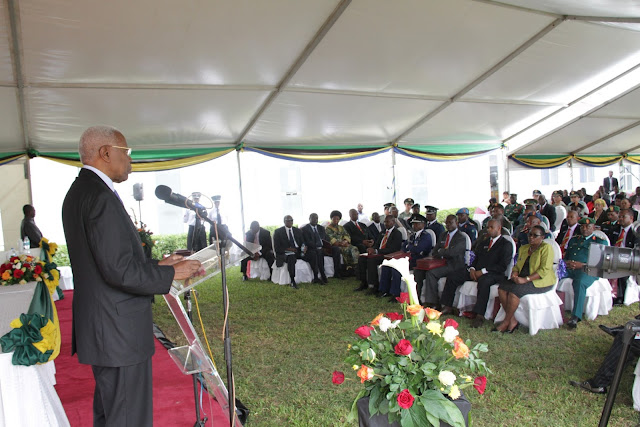 Makamu wa rais wa Jamhuri ya Muungano wa Tanzania, akihutubia wakati akifunga rasmi Kozi ya kwanza ya Chuo cha Taifa cha Ulinzi (NDC), katika sherehe za maafali ya wahitimu wa mafunzo hayo zilizofanyika chuoni hapo Kunduchi, Jijini Dar es Salaam, leo.
