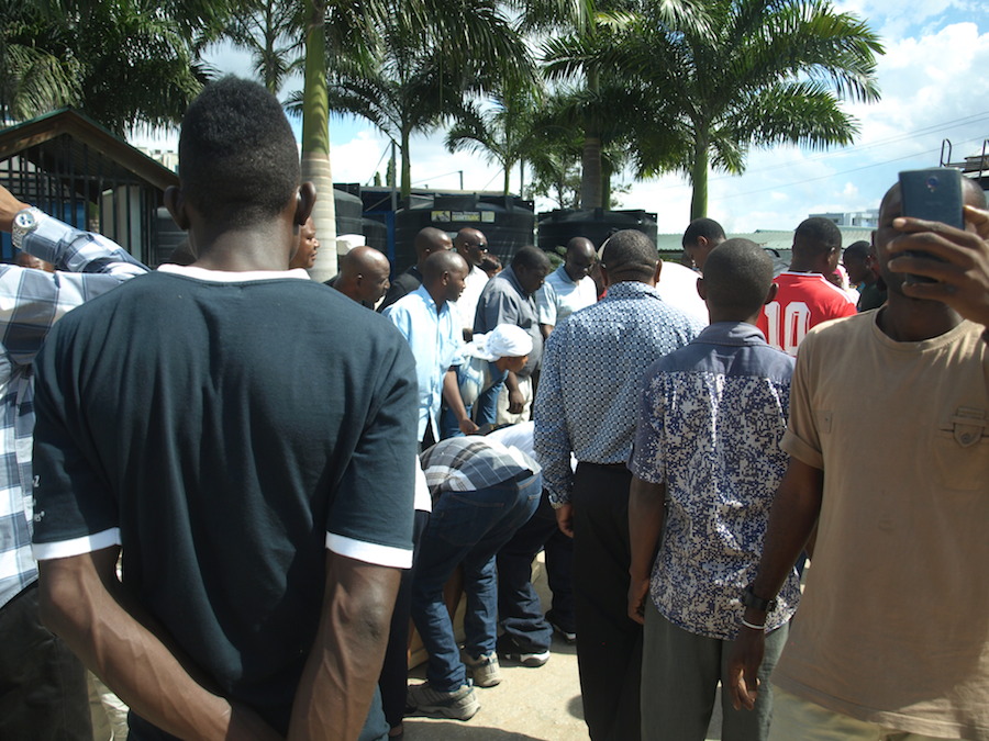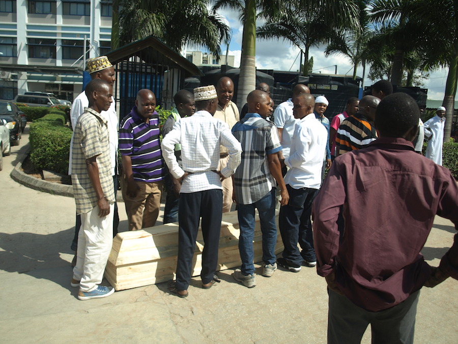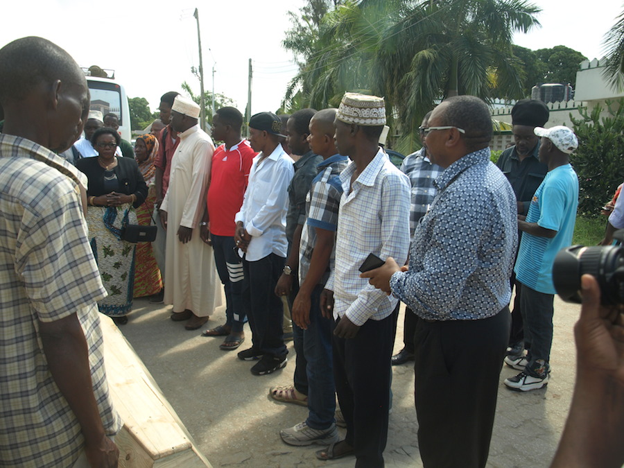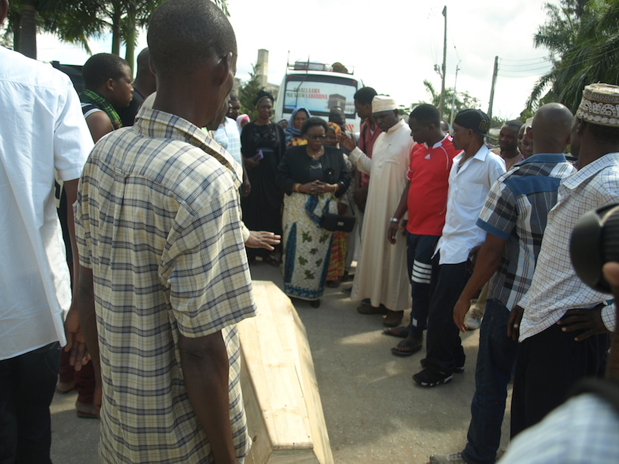 Sanduku alilolazwa Halila Tongolanga likitayarishwa kuingizwa kwenye gari la kusafirisha kuelekea Mcjichila