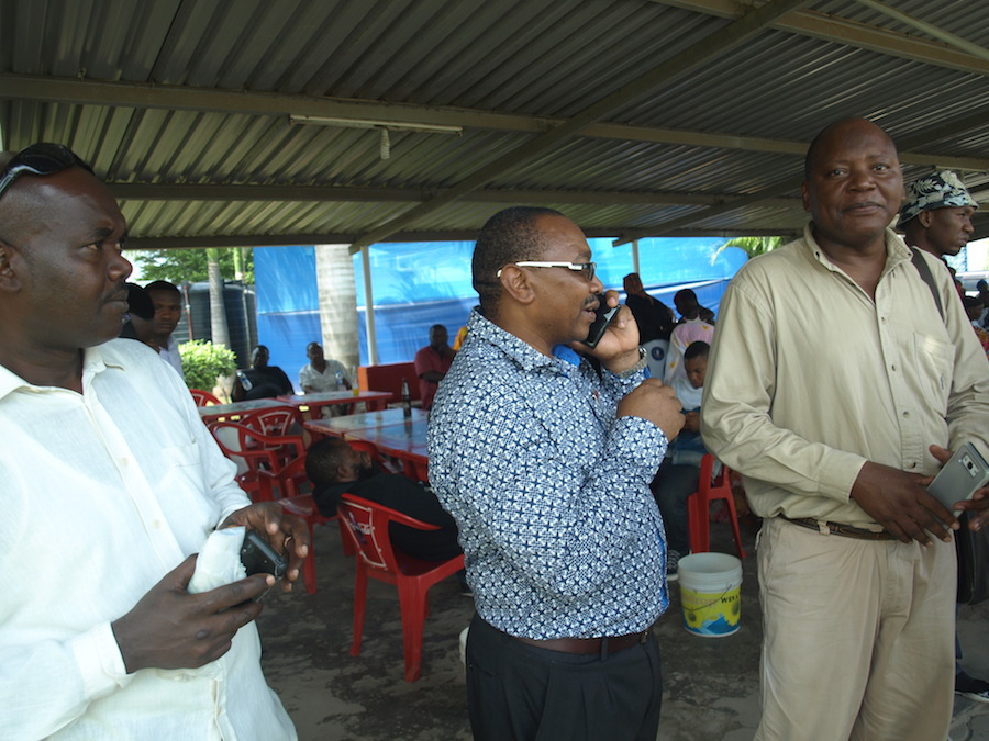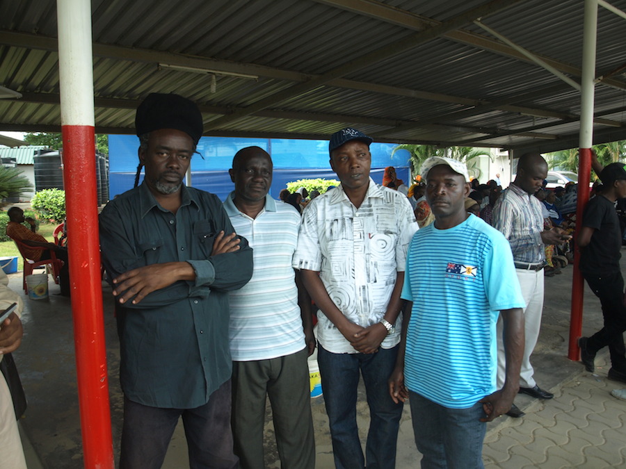 Baadhi ya wanamuziki waliowahi kufanya kazi na Tongolanga katika kundi la makondeko Six, wakiwa wanasubiri kusafirisha mwili wa mpendwa wao.Toka kushoto, mpiga bezi Innocent Nganyagwa, Meneja wa bendi Said Mahadula, mpiga solo Fadhili Ally, mpiga drums Hamza Waninga