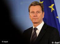 Bildunterschrift: Großansicht des Bildes mit der Bildunterschrift: Waziri wa Mambo ya Nje wa Ujerumani, Guido Westerwelle Huo ulitakiwa uwe mtazamo wa Umoja wa Ulaya pia. sio kuchukuliwa na andasa za siasa za ndani za Nicolas Sarkuzy wa Ufaransa, ambaye anaukimbia mbinyo wa kisiasa ndani ya nchi yake kwa kujibebesha dhima ya kuongoza shinikizo dhidi ya Libya.