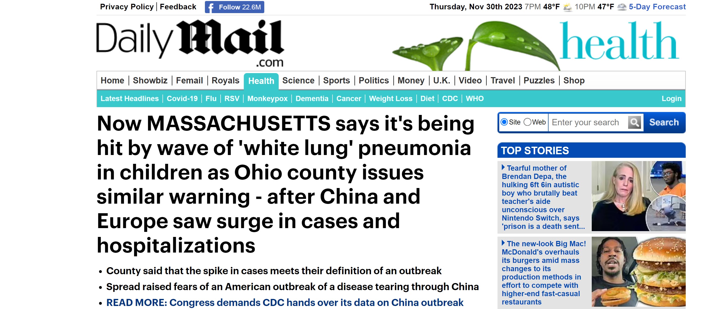 Unlike COVID, which took from December into January to reach the USA, this time, they're already reporting the strange new disease is already hitting kids in Ohio and Massachusetts.
