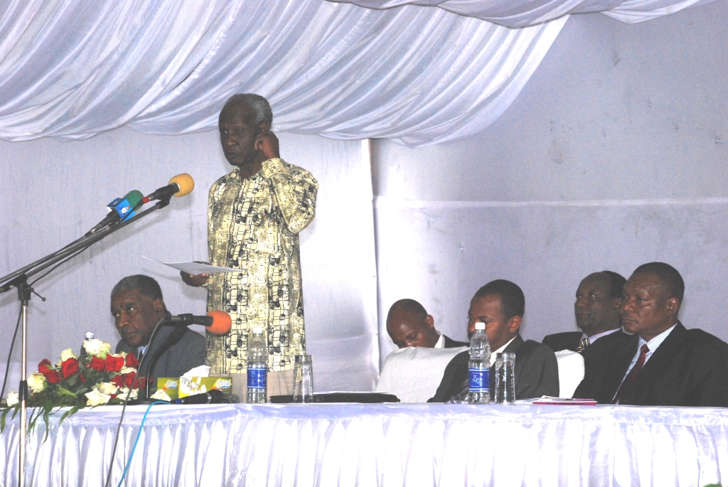 Mwenyekiti wa Tume ya Mabadiliko ya Katiba Joseph Warioba akitoa hotuba katika mkutano wa Tume hio na Waandishi wa Habari uliofanyika Bwawani Mjini Zanzibar.kulia kwake ni Makamu Mwenyekiti wa Tume hio Agostino Ramadhan.