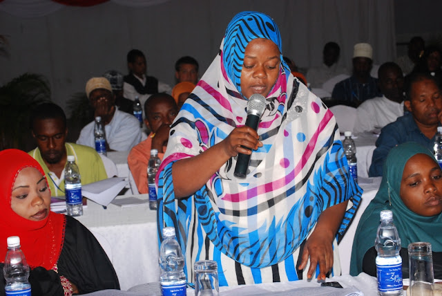 Mwandishi wa Habari Kutoka Gaazeti la Majira Mwajuma Juma akiuliza maswali katika Mkutano wa Tume ya Mabadiliko ya Katiba uliofanyika Bwawani Mjini Zanzibar.
