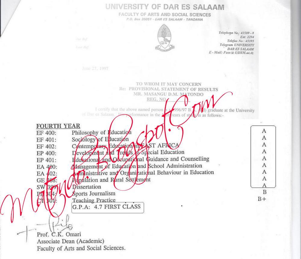 - Ninacholalamikia hapa siyo kila mwanafunzi kupata A bali ule ugumu uliopo wa kupata alama hizi kwani siamini kama kweli eti katika darasa la wanafunzi 300, ni wanafunzi watatu au wanne tu ndiyo wana uwezo wa kufaulu vizuri. Kama hivi ni kweli basi ni wazi kuna tatizo kubwa katika mfumo wetu wa elimu.