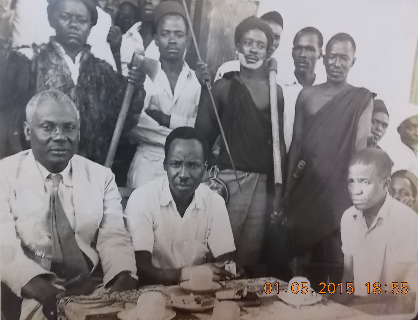 Waliosimama nyuma ni Bantu Group kikundi cha walinzi wa viongozi wa TANU na wahamasishaji na nyuma yao wa kwanza mwenye shati jeupe ni Ali Msham mzalendo wa kwanza kufungua tawi la TANU Magomeni Mapipa 1955