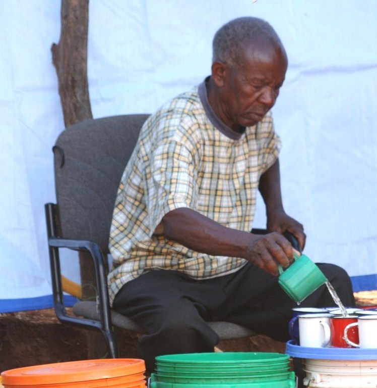 Babu Ambikile Mwaisapile akitayarisha vikombe