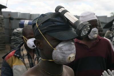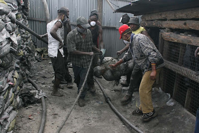 Wachimbaji( wanaapolo) wakiopoa mwili wa mmoja wa wachimbaji wenzao, jamani hata gloves hawana harufu ni kali imenikumbusha nilipoenda kupigapicha za maiti wa ajali ya treni Dodoma.Kamati ya maafa iko huko!