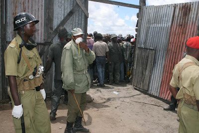 Polisi wakilinda kuimarisha ulinzi katika moja ya migodi watu walikuwa wengiwakitaka kusaidia na wengin kupata riziki si mnajua watoto wa mjini! Walidhbitiwa na vijana wa kamanda Tossi.